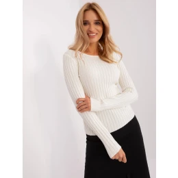Klasický svetr v barvě ecru s kulatým výstřihem .