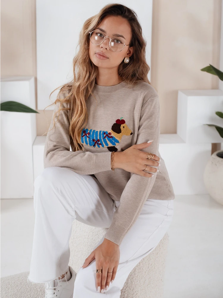 Dámský svetr s aplikací psa CHICPAWS béžový FashionStreet MY2543