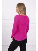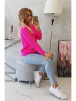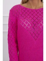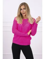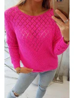 Dámský svetr s ažurovým zdobením neonově růžový - Kesi