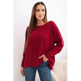 Dámský svetr s delším zadním dílem a raženou hvězdou bordó