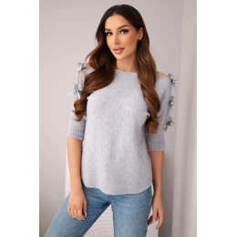 Dámský svetr s krátkým rukávem a ozdobnými mašličkami šedý