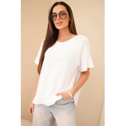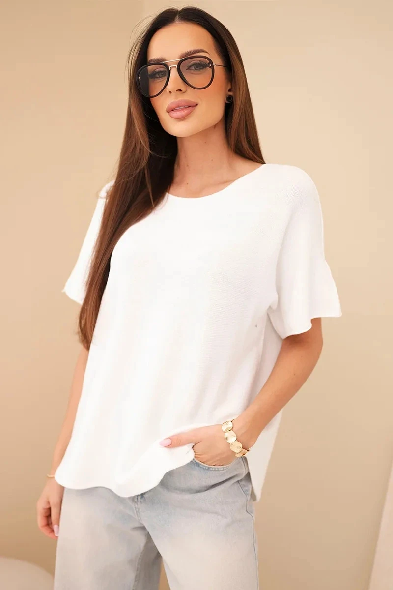 Dámský svetr s krátkým rukávem volného střihu bílý