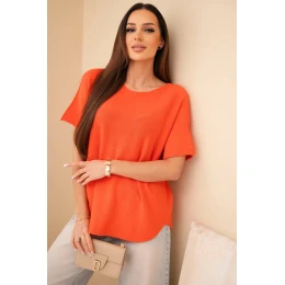 Dámský svetr s krátkým rukávem volného střihu oranžový