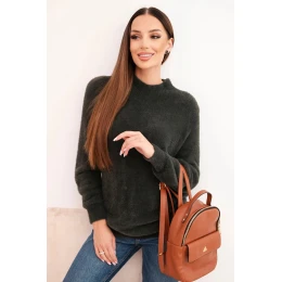 Dámský svetr s měkkou texturou a vlnou a dlouhým rukávem khaki