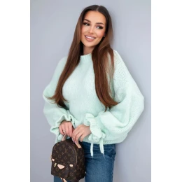 Dámský svetr s přídavkem mohairu s hrubým pletením a ozdobnými rukávy mátový
