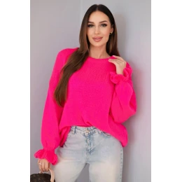 Dámský svetr s příměsí mohéru a vlny volného střihu neonově růžový