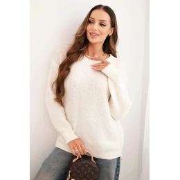Dámský svetr s vlnou s dlouhým rukávem a kulatým výstřihem ecru