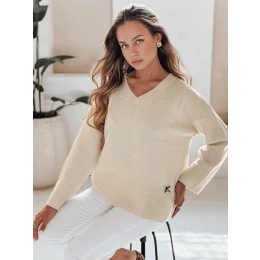 Dámský svetr s výstřihem do V VERALIA ecru FashionStreet MY2517