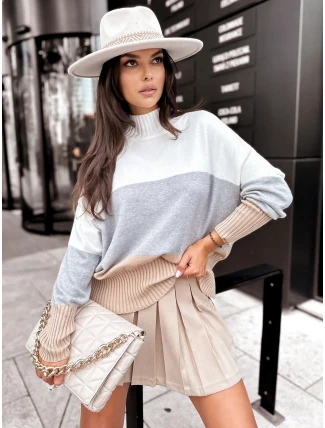 Tmavě šedý dámský kostkovaný svetr.