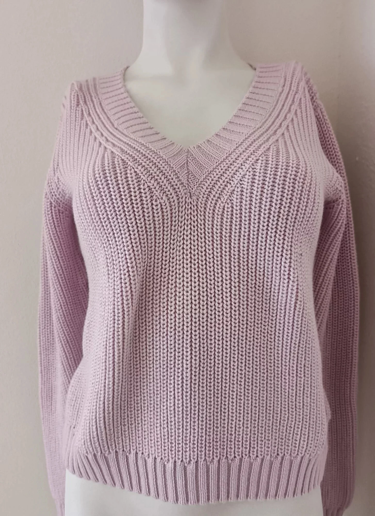 Minimalistický svetr z žebrovaného úpletu s hlubokým výstřihem do V. Uvolněný střih působí lehce sportovním dojmem. Vyrobeno v polské rodinné pletárně.
