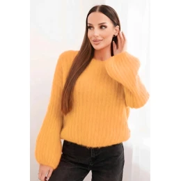 Dámský svetr z mohairu s nafouknutými rukávy meruňková