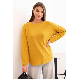 Dámský svetr z viskózy s dlouhým rukávem a kulatým výstřihem hořčicový