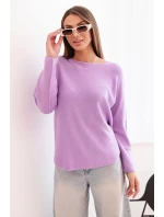 Dámský svetr z viskózy s dlouhým rukávem a kulatým výstřihem jasně fialový