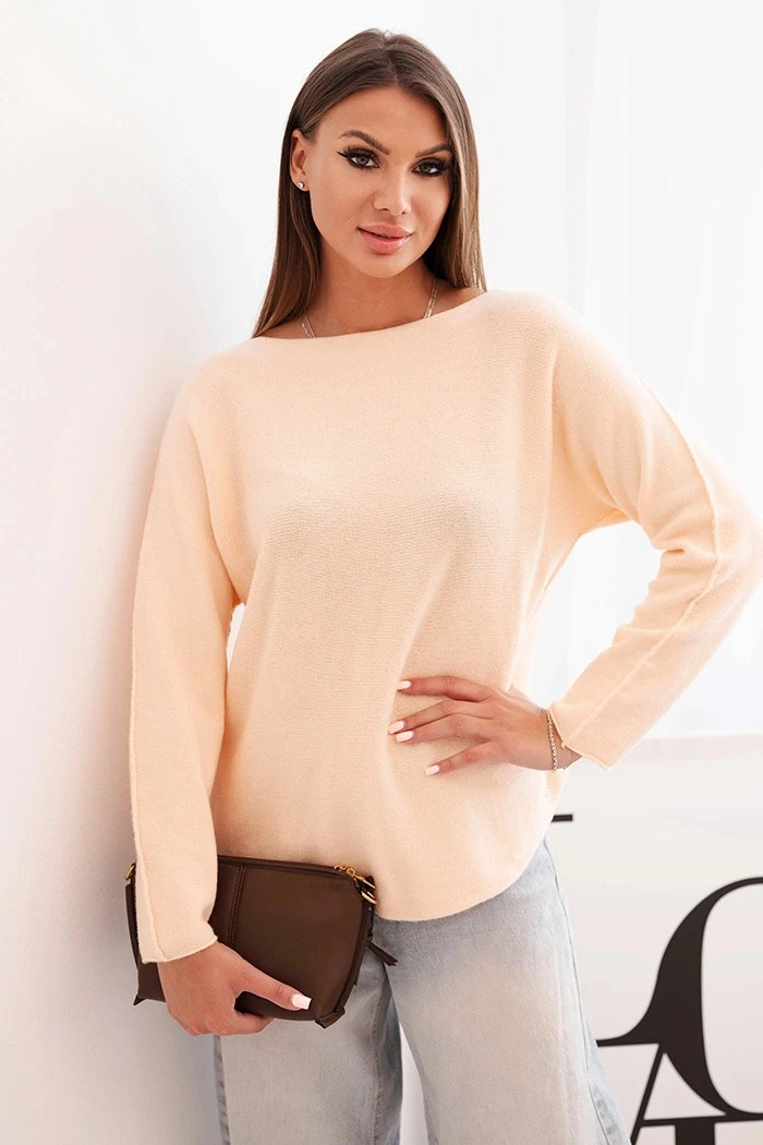 Dámský svetr z viskózy s dlouhým rukávem a kulatým výstřihem meruňkový