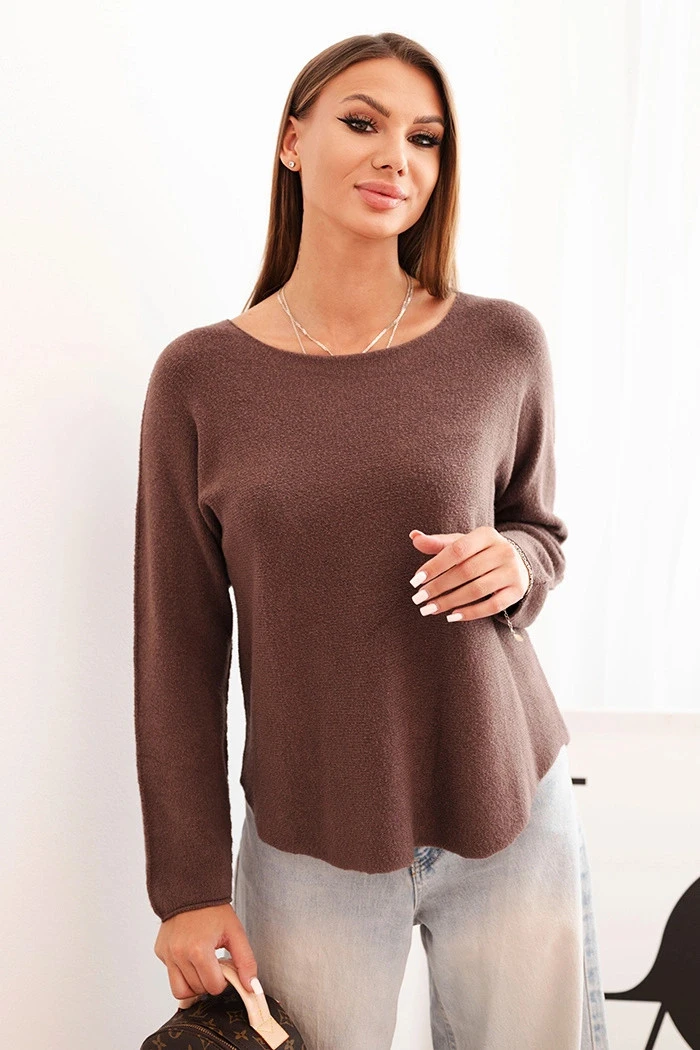 Dámský svetr z viskózy s dlouhým rukávem a kulatým výstřihem mocca