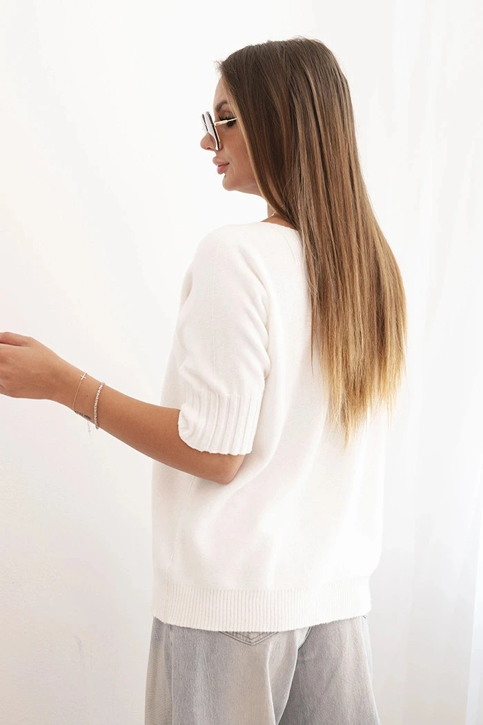 Dámský svetr z viskózy s krátkým rukávem ecru