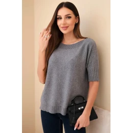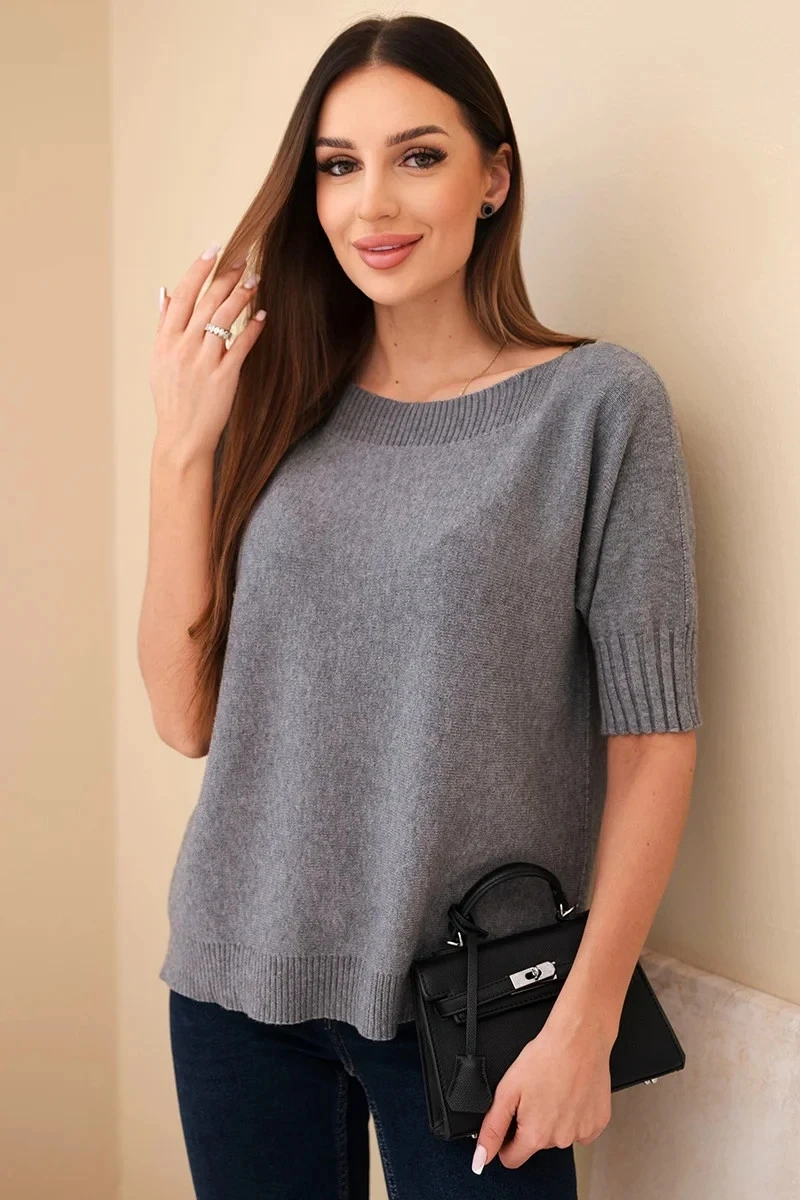 Dámský svetr z viskózy s krátkým rukávem šedý