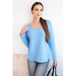 Dámský svetr z viskózy s výstřihem do V modrý