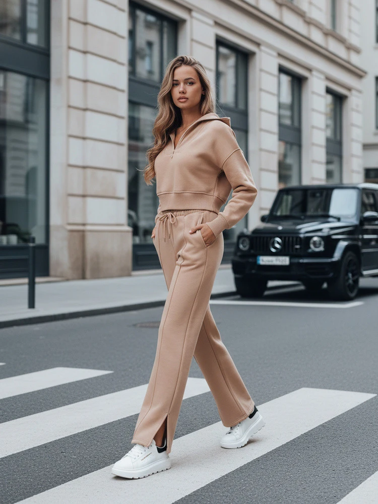 Souprava je ideální na každodenní výlety, procházky a aktivní den ve městě. Mikina s kapucí jí dodává sportovní charakter, zatímco kalhoty rovného střihu zajišťují pohodlí a estetický střih. Jednotlivé prvky lze kombinovat s dalšími oděvy a vytvářet tak různé soupravy pro různé příležitosti.