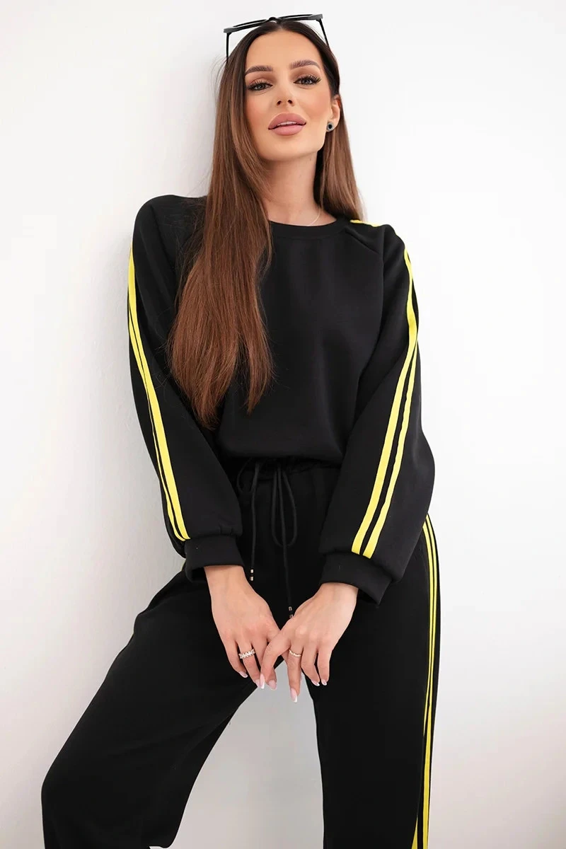 Dámský teplákový komplet Masełko s lampasy a volnou mikinou černý