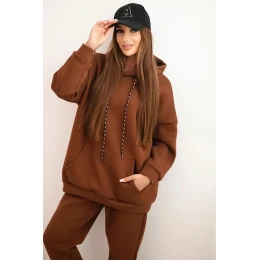 Dámský teplákový komplet zateplený z bavlny s kapucí camelový