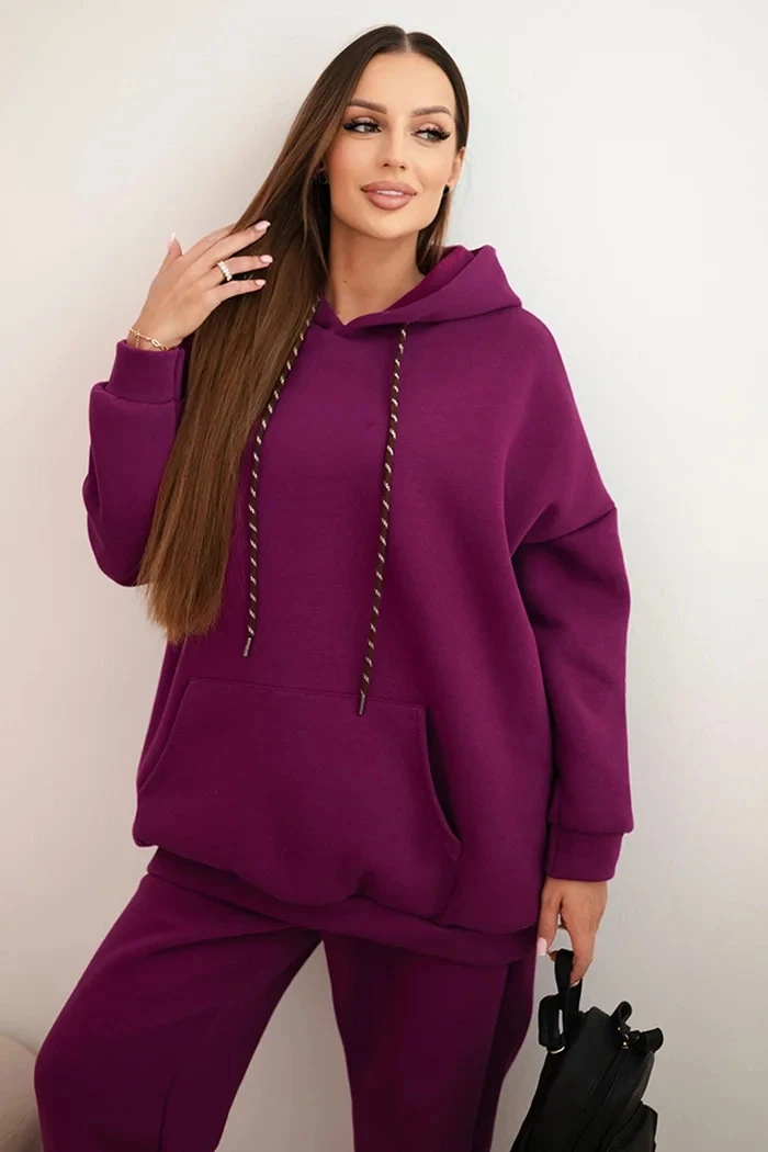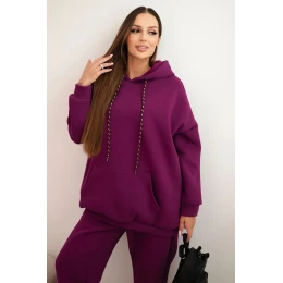 Dámský teplákový komplet zateplený z bavlny s kapucí tmavě fialový