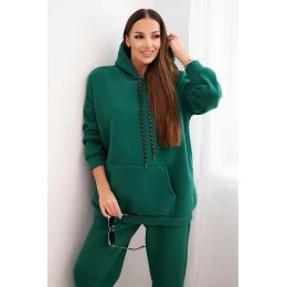 Dámský teplákový komplet zateplený z bavlny s kapucí zelený