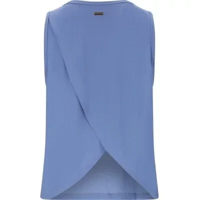 Přední část je jednoduchá s kulatým výstřihem, zatímco zadní strana je ozvláštněna překládaným designem, který dodává topu moderní a stylový vzhled.