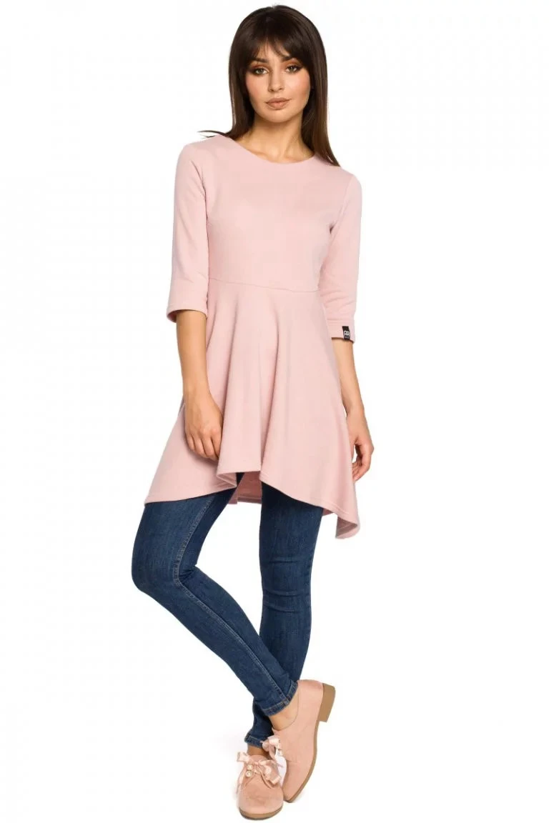Dámský elegantní peplum top asymetrického střihu - volánek vpředu kratší a vzadu delší, vysoký pas, rukávy k loktům.