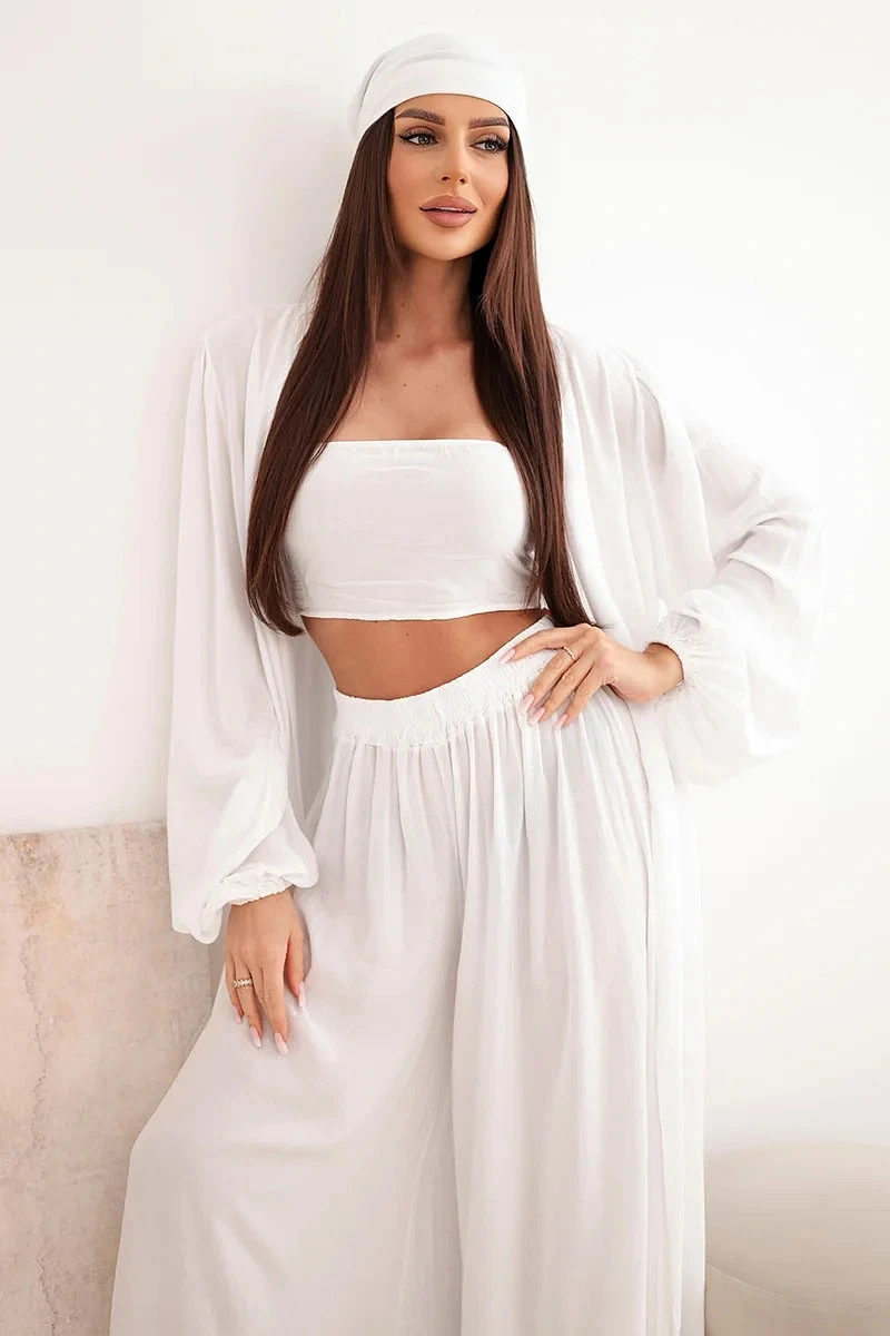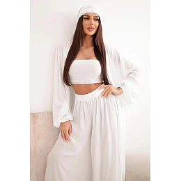 Dámský viskózový čtyřdílný komplet v boho stylu bílý
