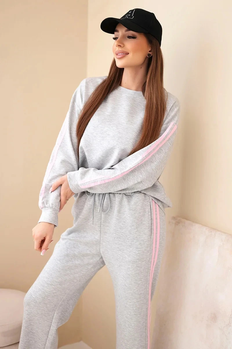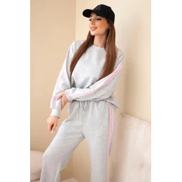 Stylová dámská tepláková souprava je ideální volbou pro ženy, které si cení pohodlí a módního vzhledu v každodenních outfitech. Souprava se skládá z volné mikiny s dlouhým rukávem a kalhot s elastickým pasem a efektními lampasy po bocích. Je to skvělá volba jak na každý den, do práce v neformálním stylu, tak na procházku nebo výlet.