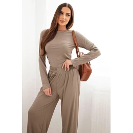 Dámský viskózový komplet s blůzou a širokými kalhotami fango