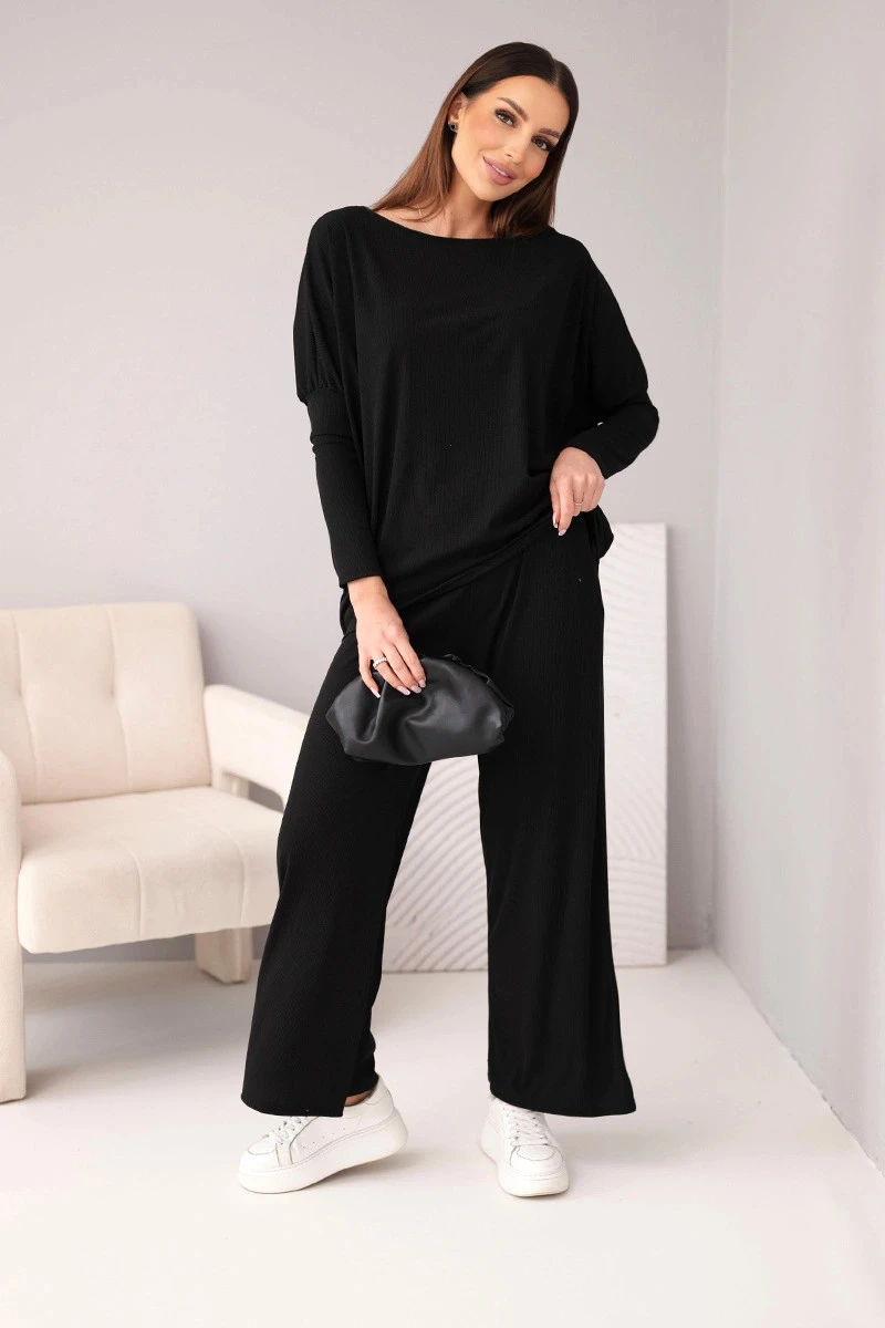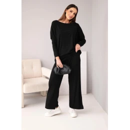 Dámský viskózový komplet s volnou blůzou a kalhotami černý
