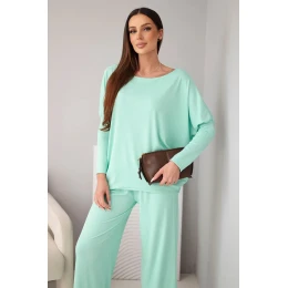 Dámský viskózový komplet s volnou blůzou a kalhotami mátový