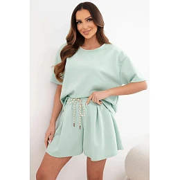 Dámský viskózový máslový komplet s krátkým rukávem a kraťasy s vysokým pasem tmavě mátová