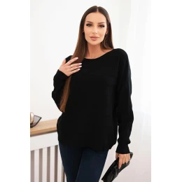 Dámský viskózový svetr s krajkovým vzorem a dlouhým rukávem černý