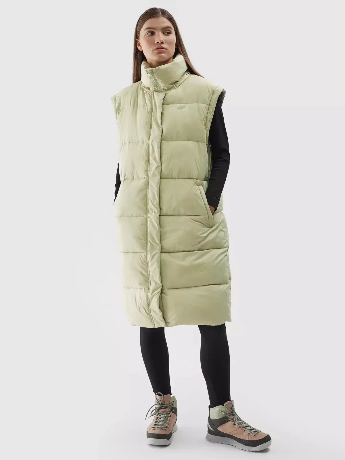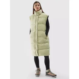 Dámský péřový kabát v oversize střihu s výplní ze syntetického peří poskytuje větší tepelný komfort a chrání záda a stehna. Zimní bunda má také velkou odnímatelnou kapuci a vysoký límec. Dvoucestný zip usnadní přizpůsobit spodní část kabátu, např. při jízdě autem. Díky odepínacím rukávům lze kabát proměnit v dlouhou vestu. Impregnovaný z vnější strany materiál podporuje ochranu proti nadměrné absorpci vlhkosti.