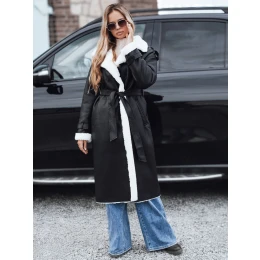 Stylový dámský kabát z ekokůže, zateplený měkkou kožešinou. Dlouhý střih, pásek v pase a elegantní provedení z něj činí módní volbu pro zimní a chladné dny. Ideální pro každodenní i večerní styling, zaručuje teplo a eleganci.