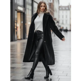 Dámský dlouhý kabát NY0760z z měkké kožešinové tkaniny je ideální volbou pro zimní dny. Klasický polstrovaný límec a knoflíky na přední straně dodávají kabátu elegantní vzhled, zatímco nakládané kapsy a boční rozparky zvyšují pohodlí při nošení. Model je podšitý pro větší pohodlí a teplo.