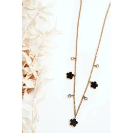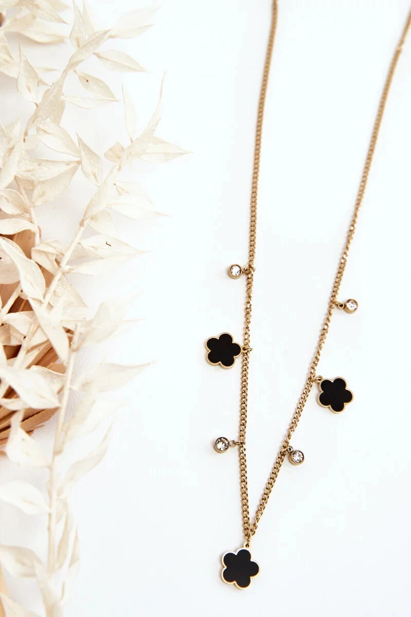 Dámský zlatý řetízek s černými květy