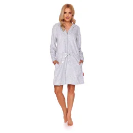 Dámský župan 1008 grey Doctornap - šedá barva - z vysoce jakostní bavlny - s kapsami - zapínání na zip - praktická šňůrka v pase - s kapucí - délka nad kolena - certifikát OEKO-TEX Standard 100