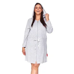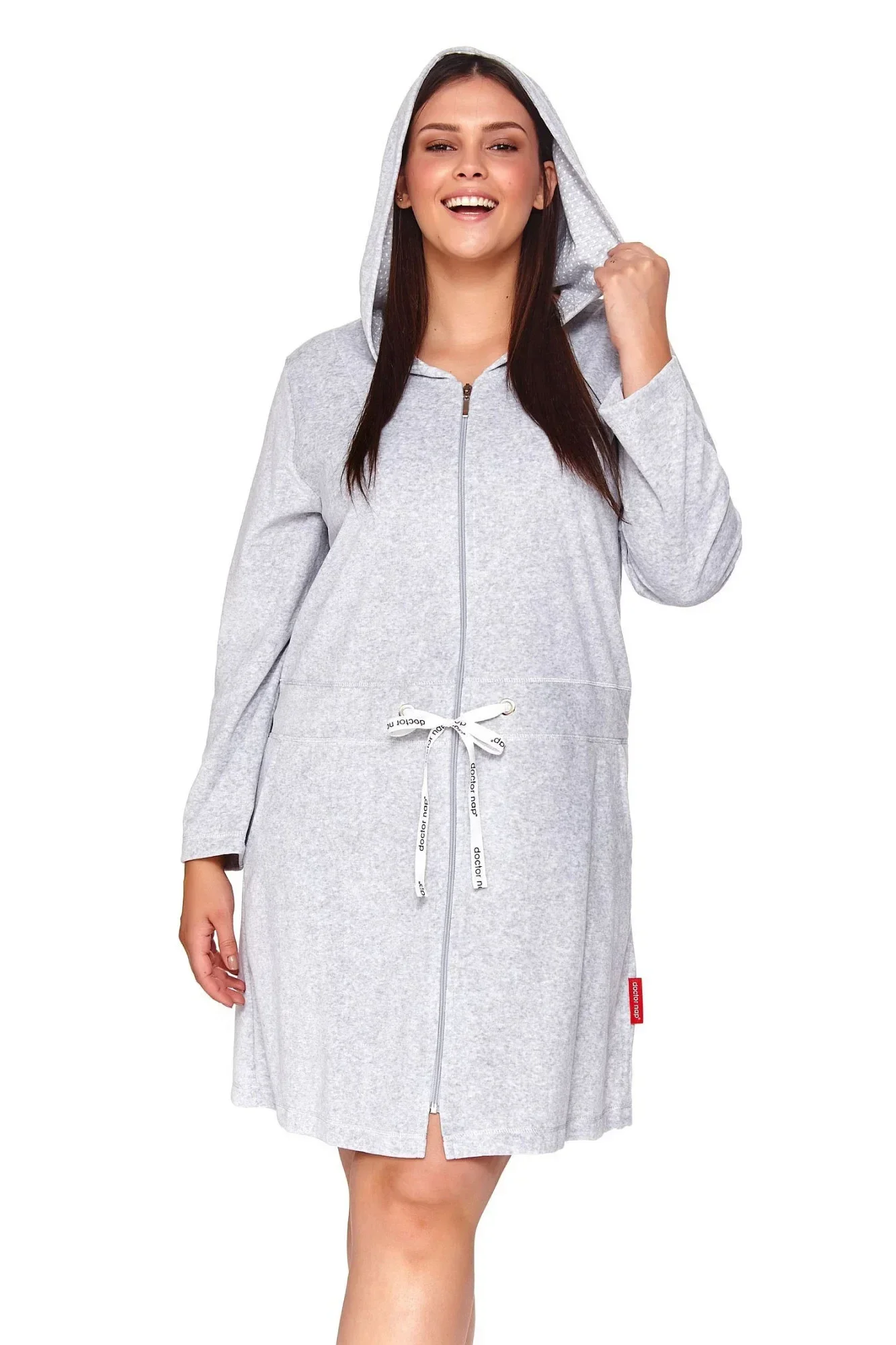 Dámský župan 1008 grey plus Doctornap - šedá barva - z vysoce jakostní bavlny - s kapsami - zapínání na zip - praktická šňůrka v pase - s kapucí - délka nad kolena - certifikát OEKO-TEX Standard 100