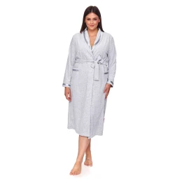 Dámský župan 1078 grey plus Doctornap - šedá barva - z vysoce jakostní bavlny - dlouhé rukávy - na zavazování v pase - antibakteriální, protiplísňové a termoregulační vlastnosti - délka pod kolena