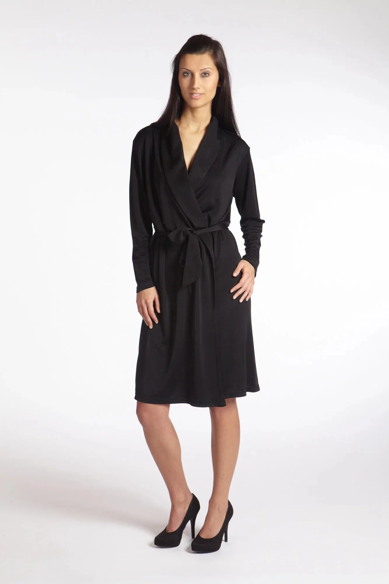 Gattina - 180324 dámský hedvábný župan s dlouhým rukávem a kapsami. Materiál: 60% Hedvábí , 40% Viskose.