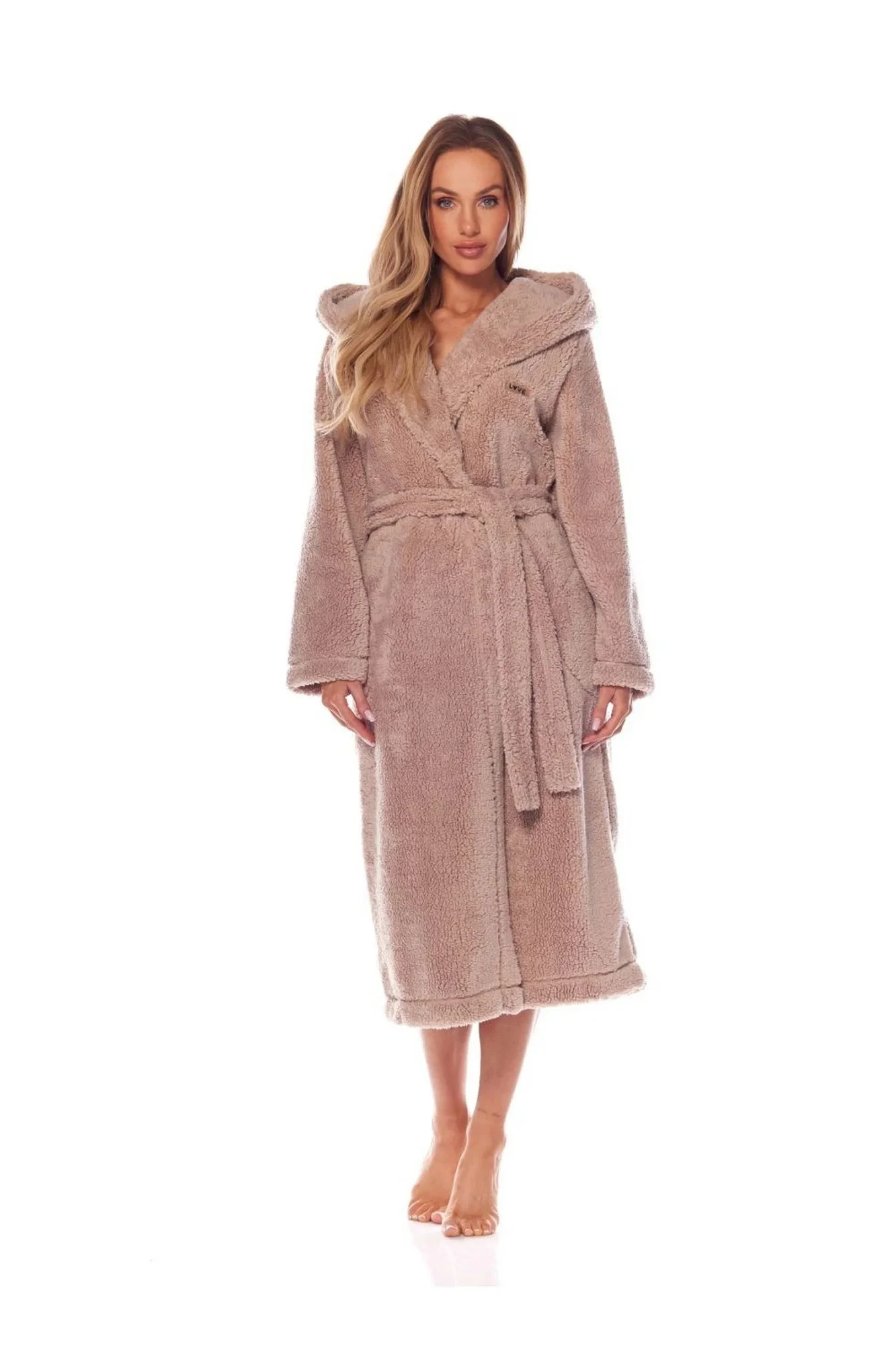 Dámský župan 2205 Brandi angora L&L - Angora barva - velmi měkký a příjemný materiál na dotek - s kapucí - na bocích našité kapsy - zavazování na pásek