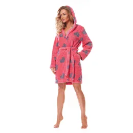 Dámský krátký župan 2310 Futura L&L - velmi měkký a příjemný materiál na dotek - amarantová barva s šedými srdíčky - na bocích našité kapsy - zavazování na pásek - s kapucí