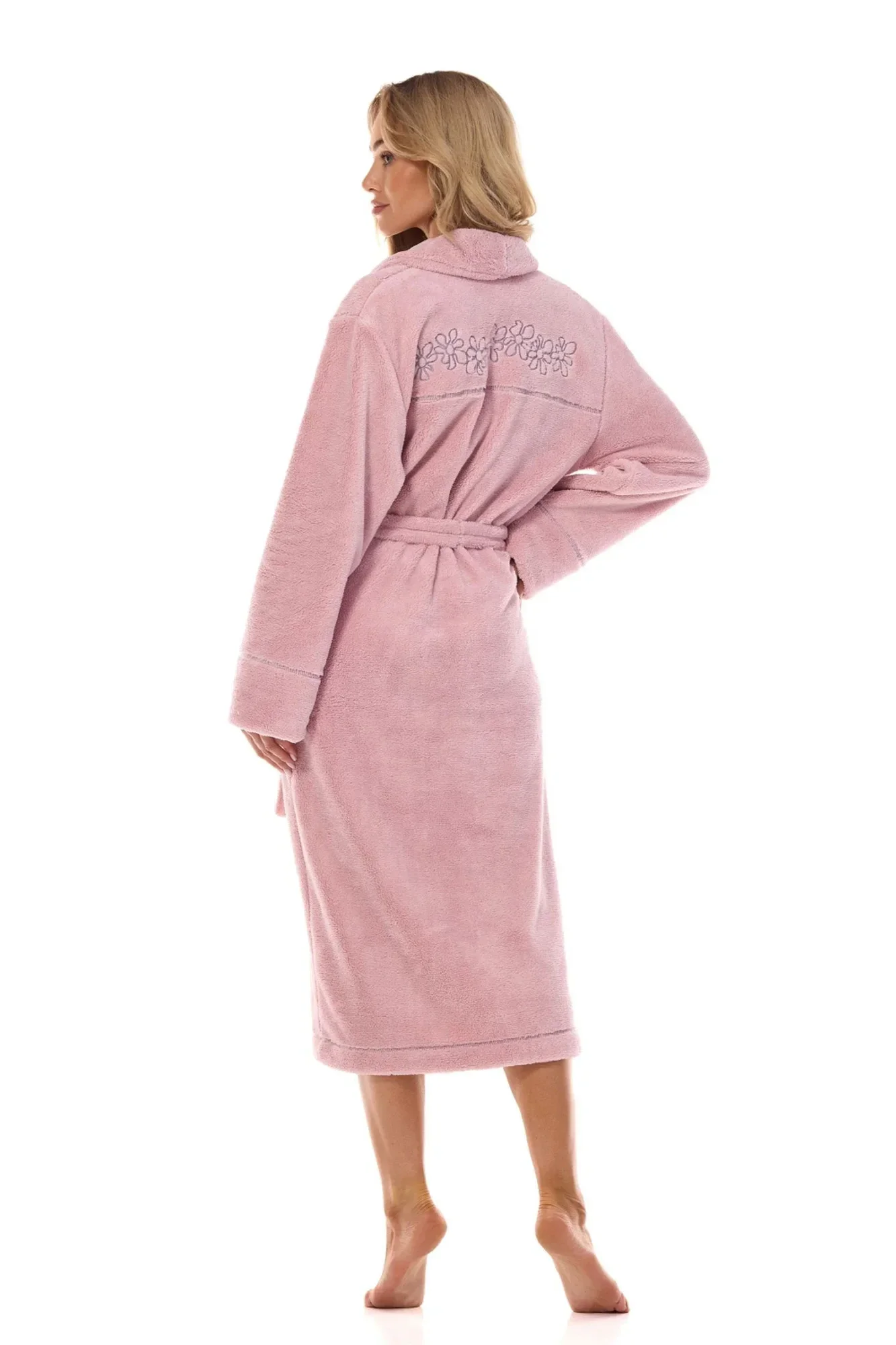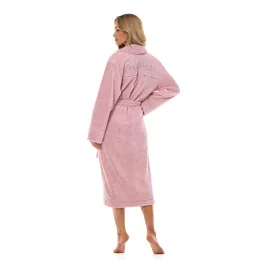 Dámský župan 2413 Camelia balet L&L - růžová barva - z měkkého materiálu typu soft - na zádech ozdobná výšivka - kapsy a v pase vázání na pásek - šálový límec - dlouhý