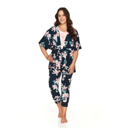 Dámský župan, který je vyrobený ze vzorované bavlny.