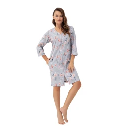 Dámský župan 392 grey Luna - šedá barva - z vysoce jakostní bavlny - se vzorem - tříčtvrteční rukávy - zapínání na zip - s kapsami