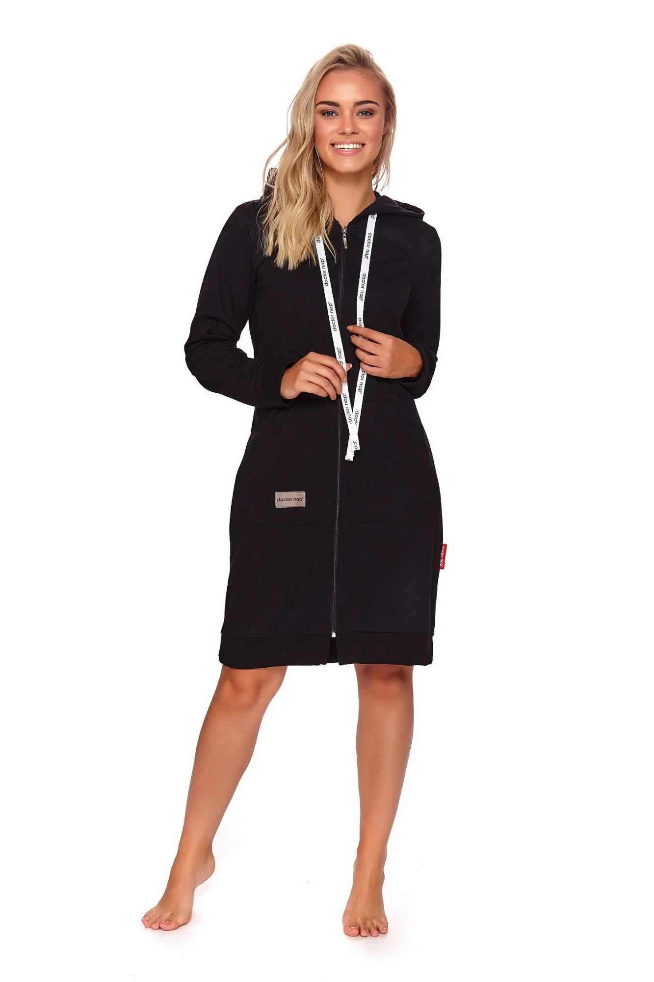 Dámský župan 4136 Doctor nap - vyrobený z velmi kvalitní a příjemné bavlny - černá barva - s kapucí - s kapsami - zapínání na zip - délka nad kolena
